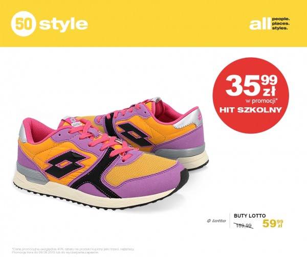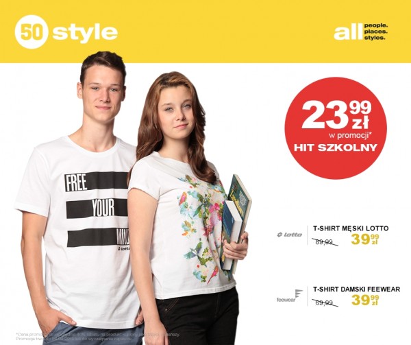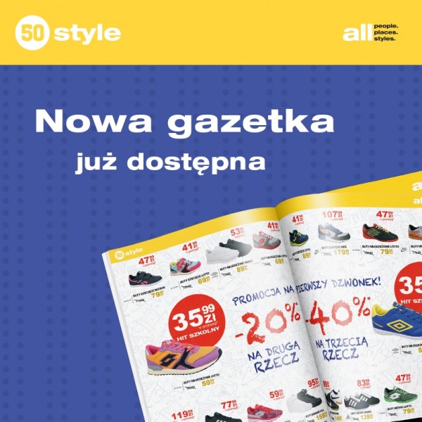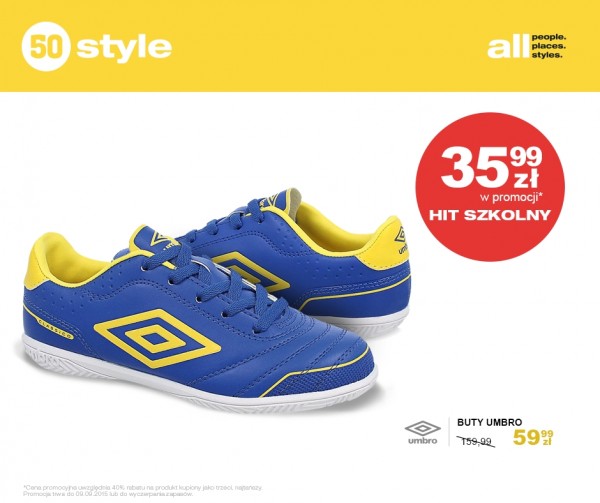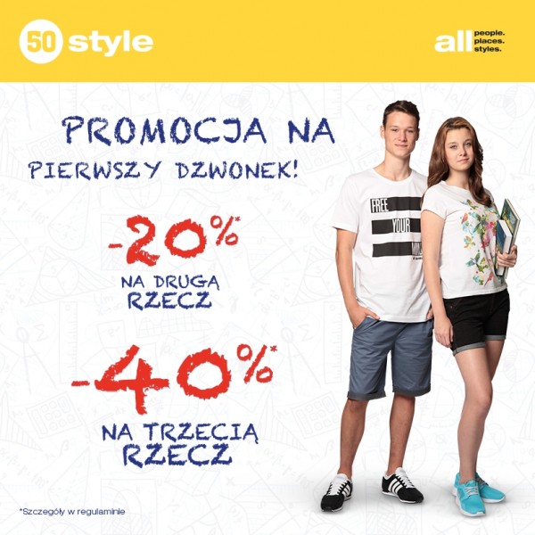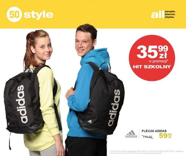Stylowy powrót do szkoły z 50 style! Na udany początek września, marka prezentuje kolejną gazetkę produktową, której hitem zostały wygodne buty Umbro i funkcjonalny plecak adidas. Oba w rewelacyjnej cenie 59.99. Chcesz taniej? Skorzystaj z aktualnej promocji i jako trzeci produkt kup je za jedyne 35.99! Zapraszamy do 50 style – powrót do szkoły może być bardzo przyjemny. Zakupy zrobisz także na 50style.pl.